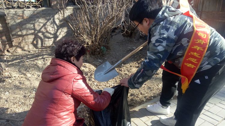 看安馨養(yǎng)老服務中心后院里參加清掃衛(wèi)生的青年團員志愿們拿著笤帚、鐵鍬、鋸等用具。開始了緊張的忙碌,鋸枯樹枝的,清掃院落的,清倒垃圾的,大家分工合作,經過了一上午的清掃整理,整個院落更加的干凈整潔了。