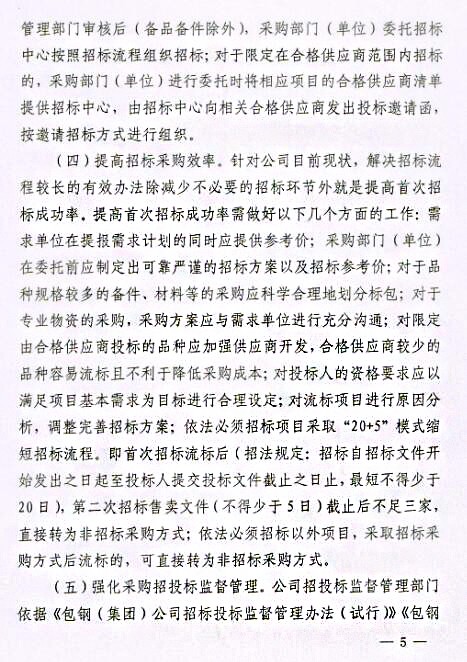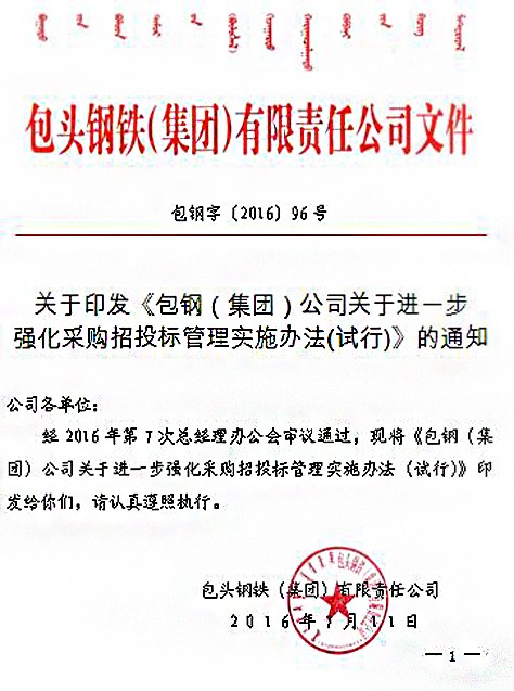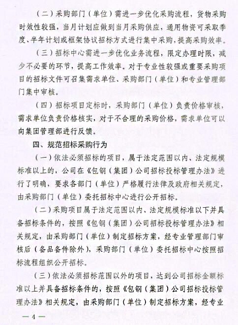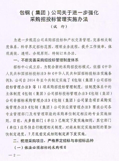 關(guān)于印發(fā)《包鋼(集團(tuán))公司關(guān)于進(jìn)一步強(qiáng)化采購招投標(biāo)管理實(shí)施辦法(試行)》的通知