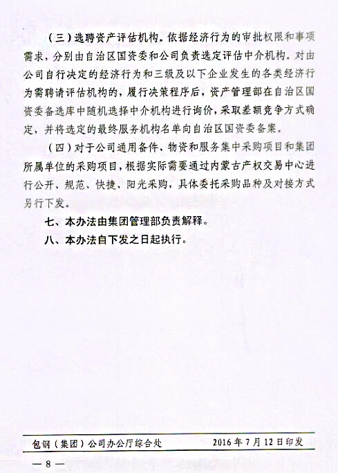 下一條:關(guān)于印發(fā)《包鋼(集團(tuán))公司關(guān)于進(jìn)一步強(qiáng)化采購招投標(biāo)管理實(shí)施辦法(試行)》的通知
